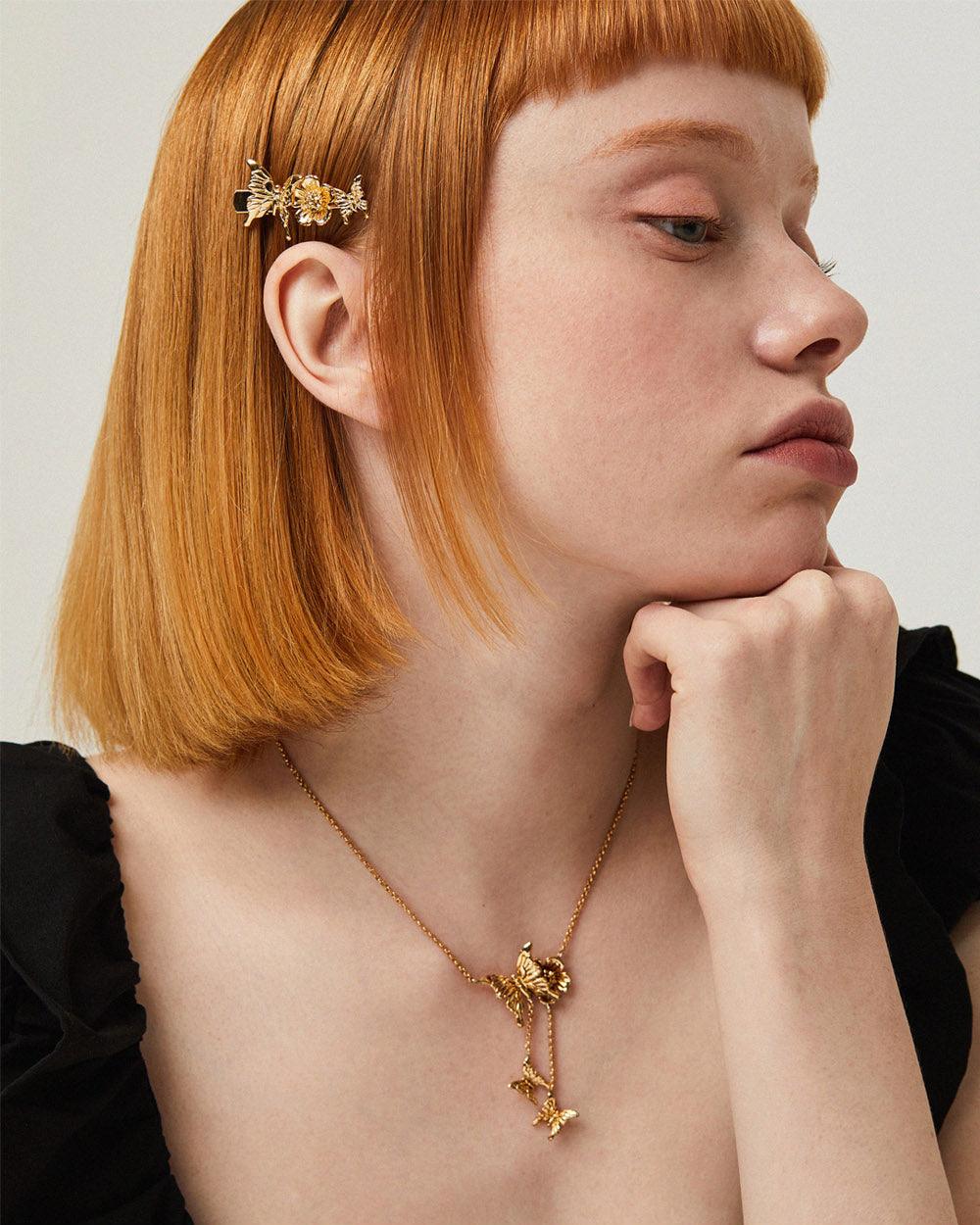 Add a sophisticated touch with this hair clip, featuring a vibrant blend of butterflies and flowers.