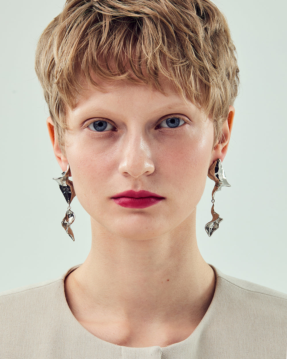 A molten metal silhouette in motion, revealing sculptural depth with every shift of light.