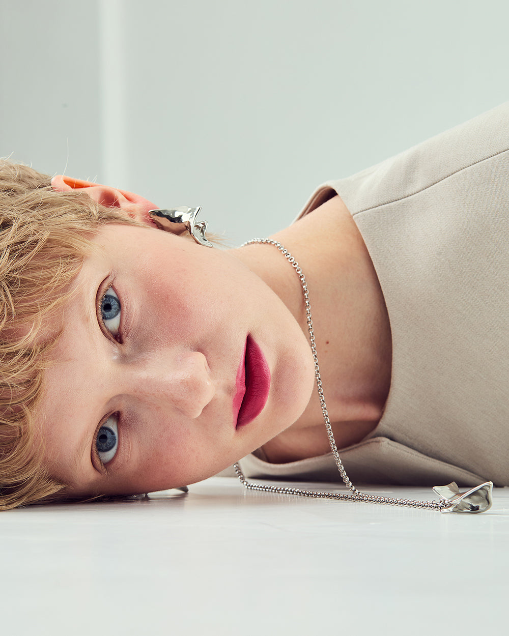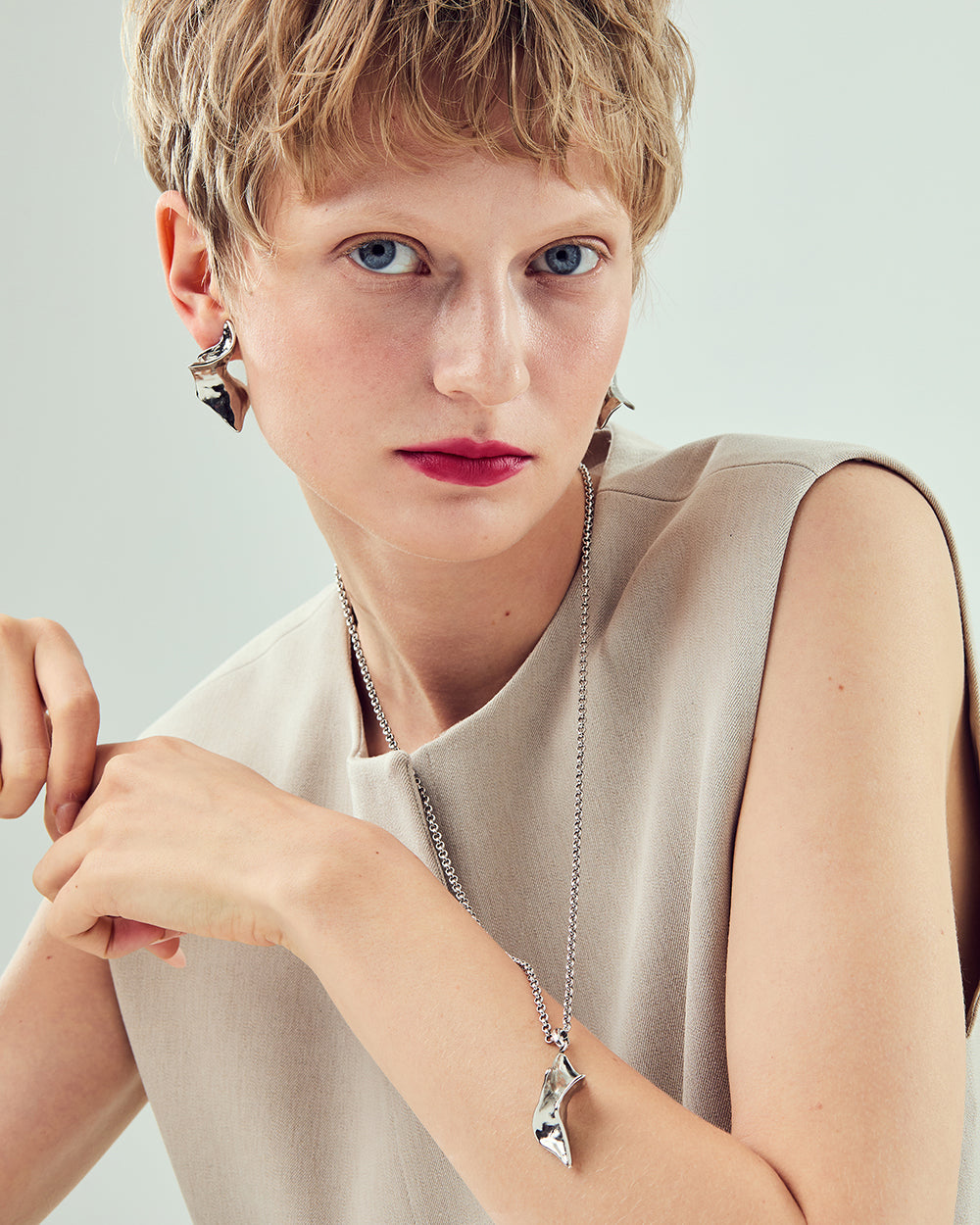 A molten metal silhouette in motion, revealing sculptural depth with every shift of light.