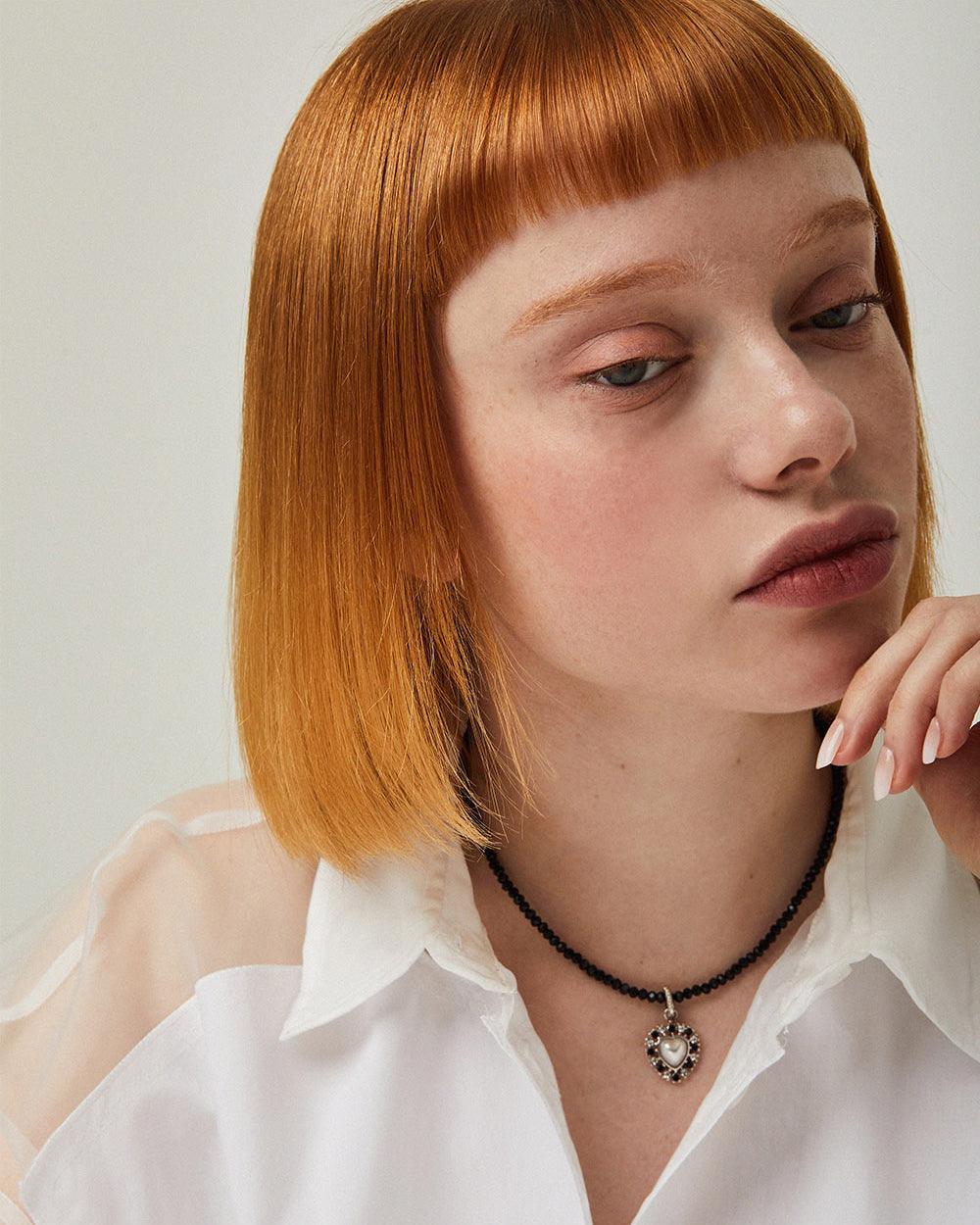 Stay on-trend with this choker necklace, featuring black crystal beads and a charming heart pendant.