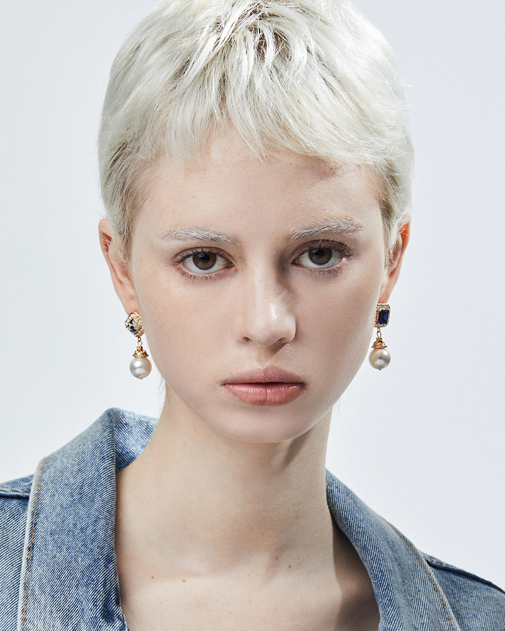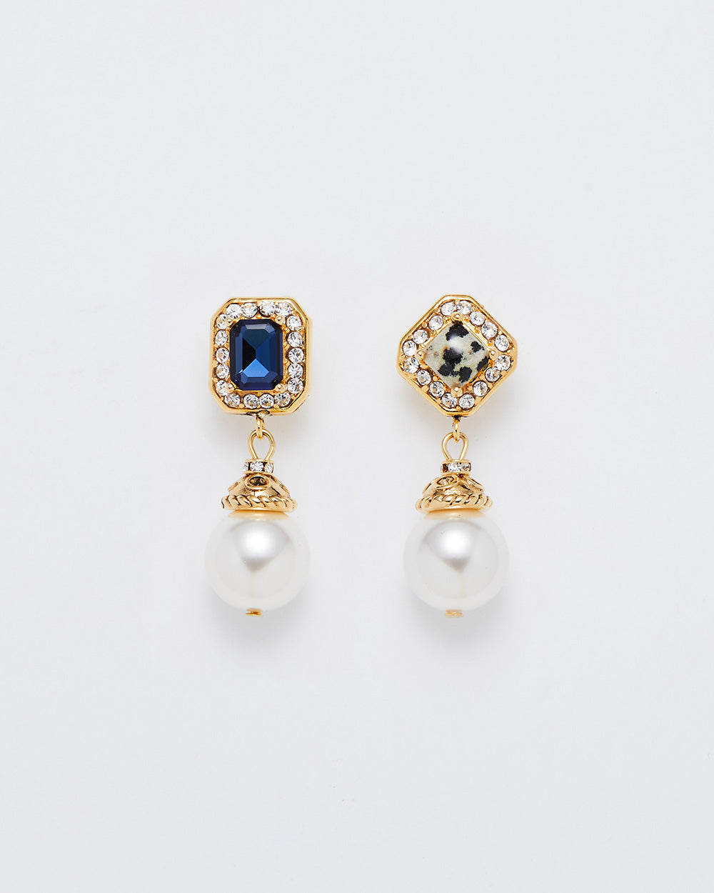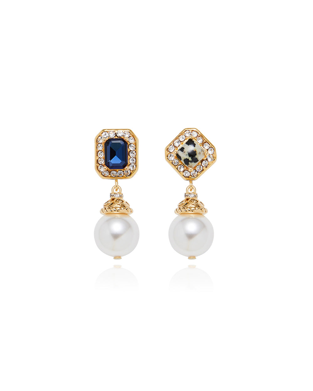 MATERIAL : Dalmatian Jasper (Natural Stone), Rhinestones, Synthetic Pearls, Silver925 Posts, 18K Gold Plated Brass (Allergy Free), Waterproof / tarnish resistant coated.