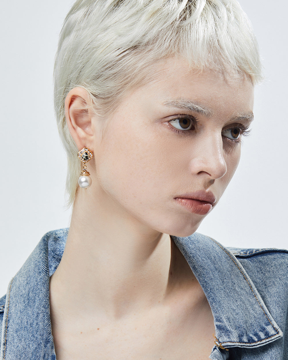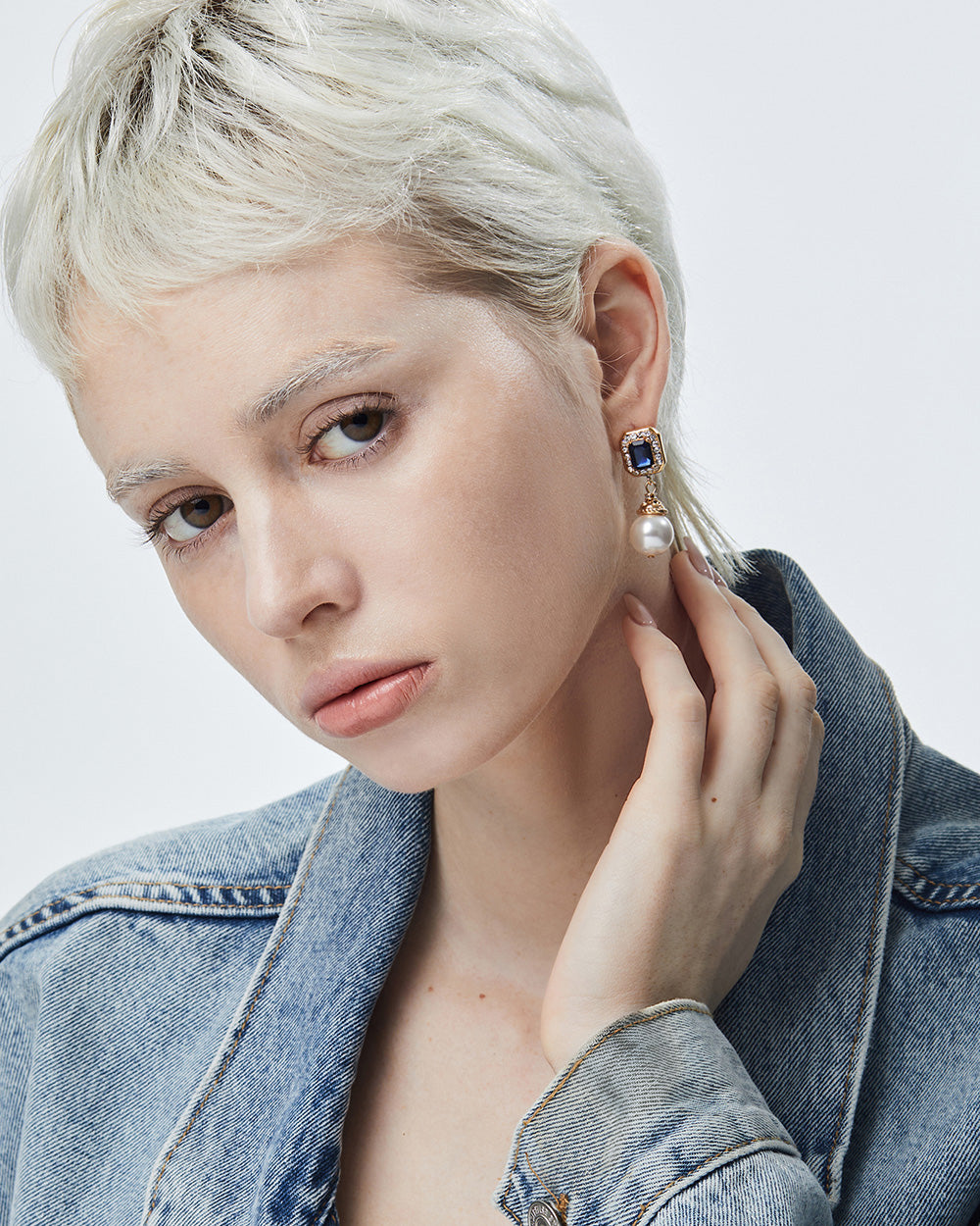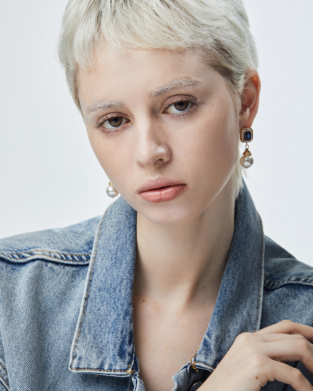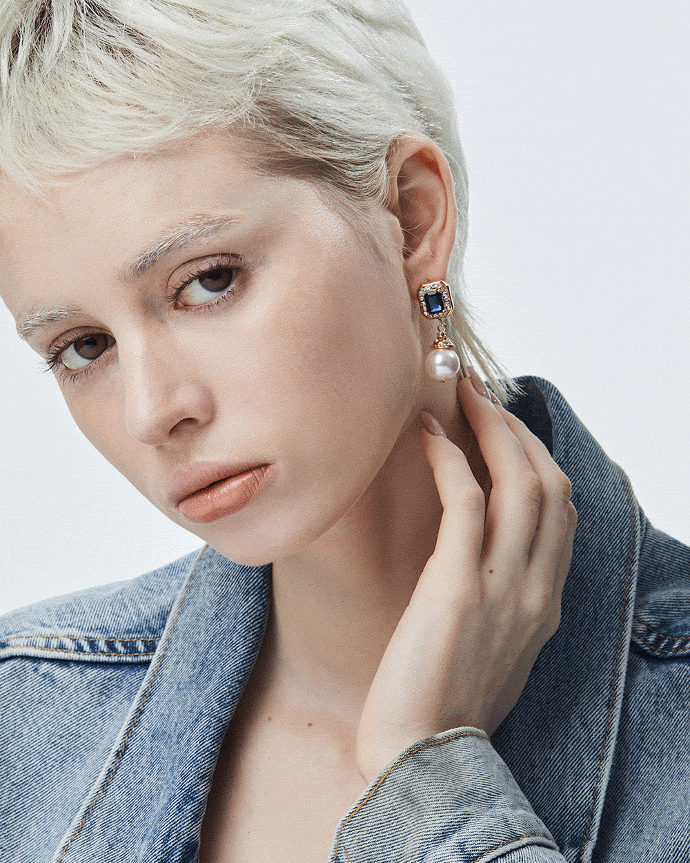 MATERIAL : Dalmatian Jasper (Natural Stone), Rhinestones, Synthetic Pearls, Silver925 Posts, 18K Gold Plated Brass (Allergy Free), Waterproof / tarnish resistant coated.