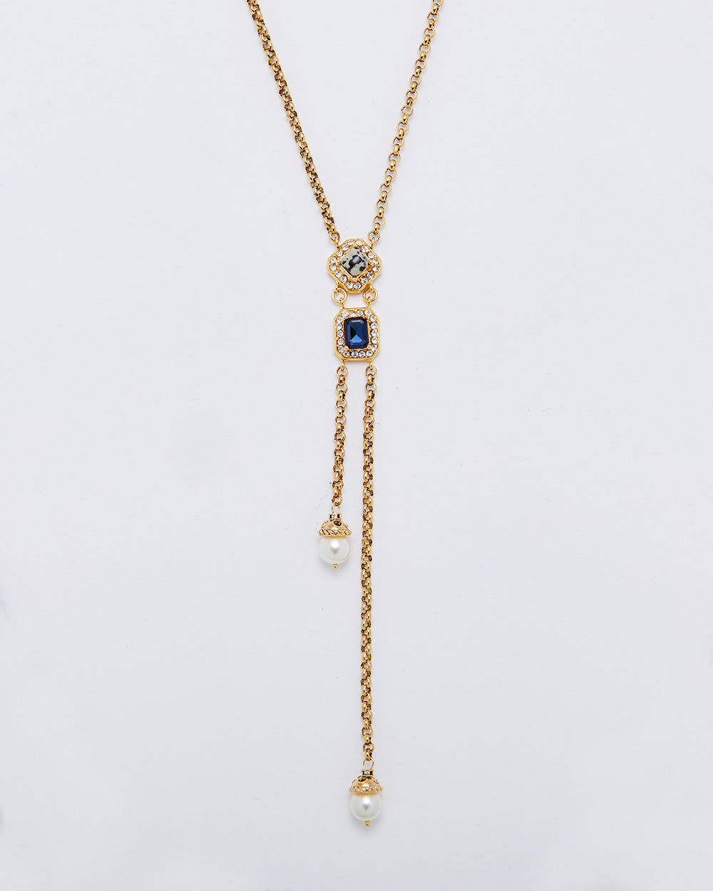 MATERIAL : Dalmatian Jasper (Natural Stone), Rhinestones, Synthetic Pearls, 18K Gold Plated Brass (Allergy Free), Waterproof / tarnish resistant coated, Steel.