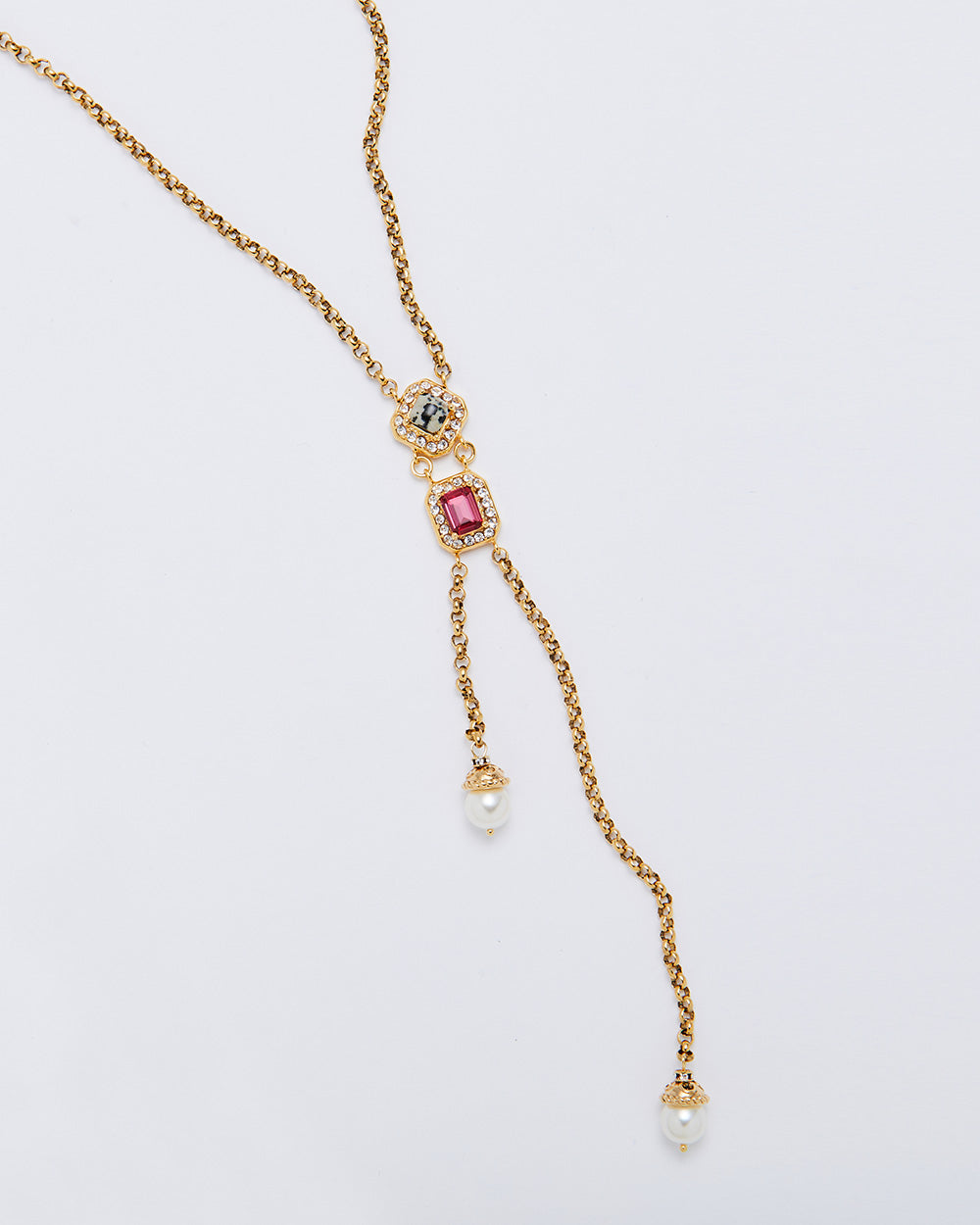 MATERIAL : Dalmatian Jasper (Natural Stone), Rhinestones, Synthetic Pearls, 18K Gold Plated Brass (Allergy Free), Waterproof / tarnish resistant coated, Steel.