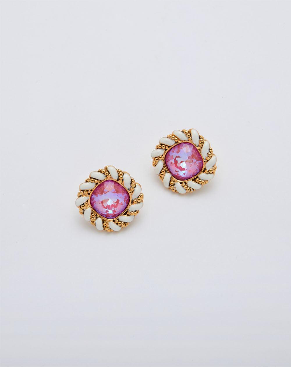 Add a lively touch with these crystal earrings, showcasing a fresh pop of pink.