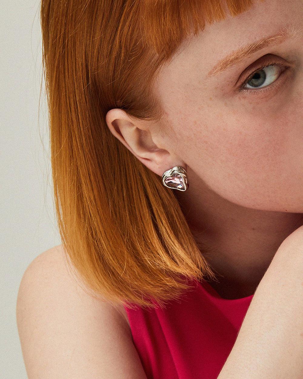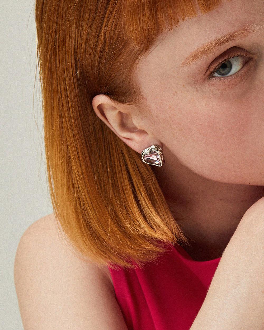 Add a sweet touch with these heart earrings, featuring soft pink crystals for a lovely pop of color.
