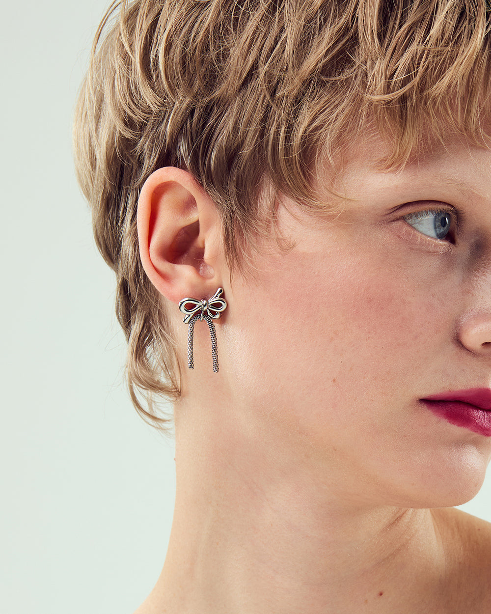 A sculptural knot meets fluid chains, a silhouette that flows with every movement.